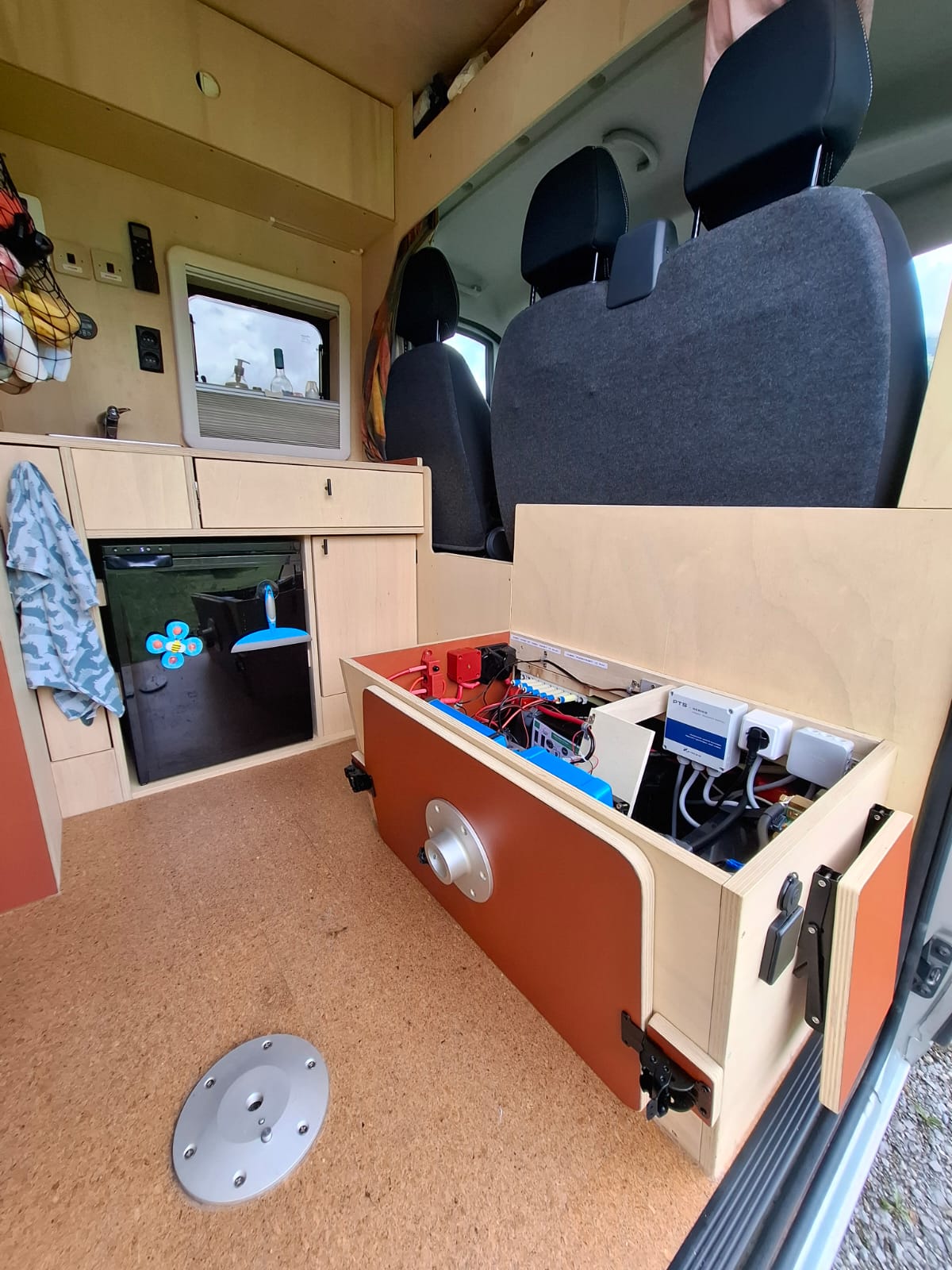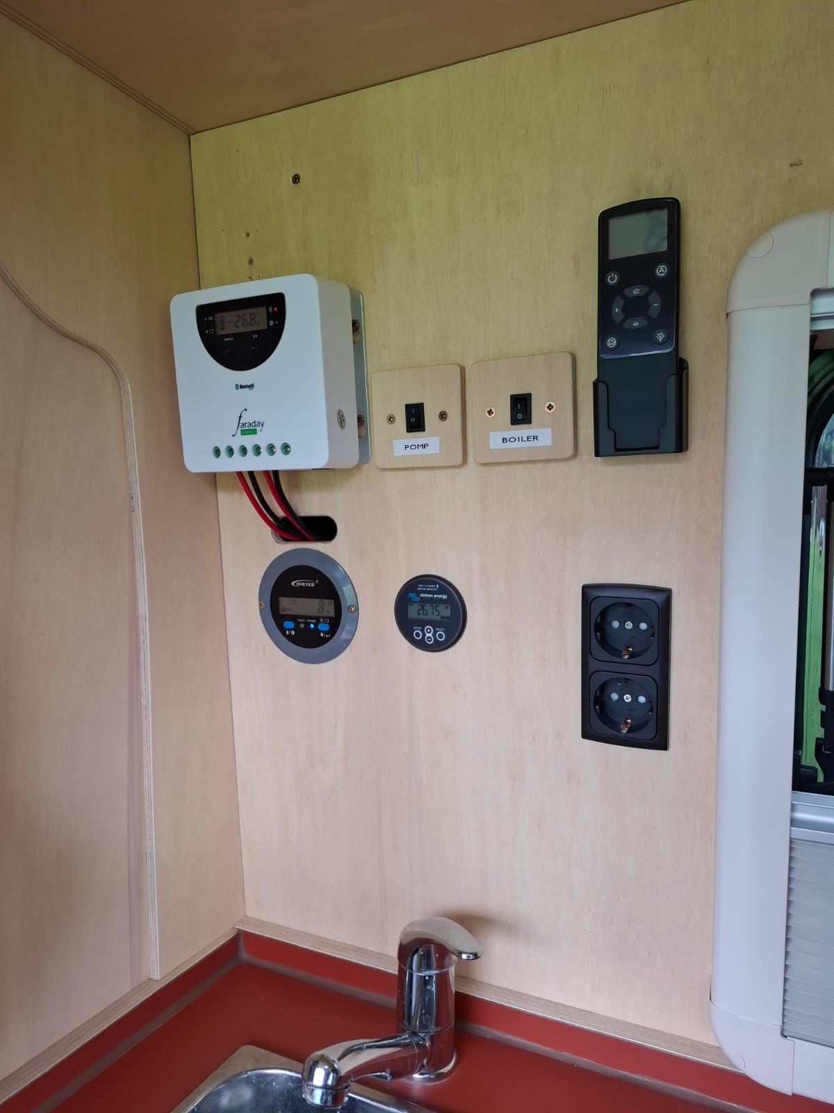 De hele bouw van de camper hebben ze zelf gedaan, maar voor de elektra schakelden ze de hulp van Faraday Energy in. Wij hielpen met het ontwerp van de installatie, leverden alle materialen en controleerden het systeem aan het eind van de bouw.