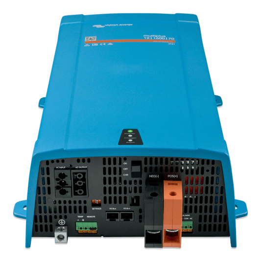 Alles in één oplossing voor zowel opladen van uw accubank als omvormen naar 230VAC.