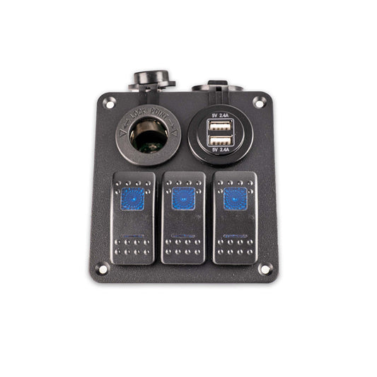 DC Rocker Switch paneel 3x schakelaars (aluminium)